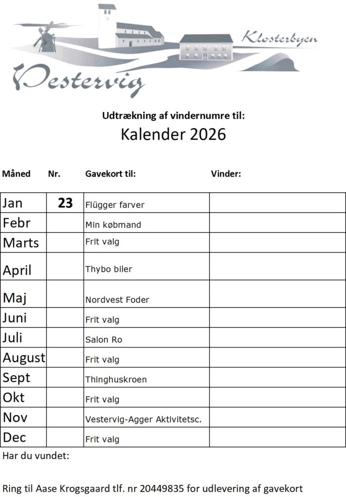 Vindere af 2026 – kalenderlodtrækning
